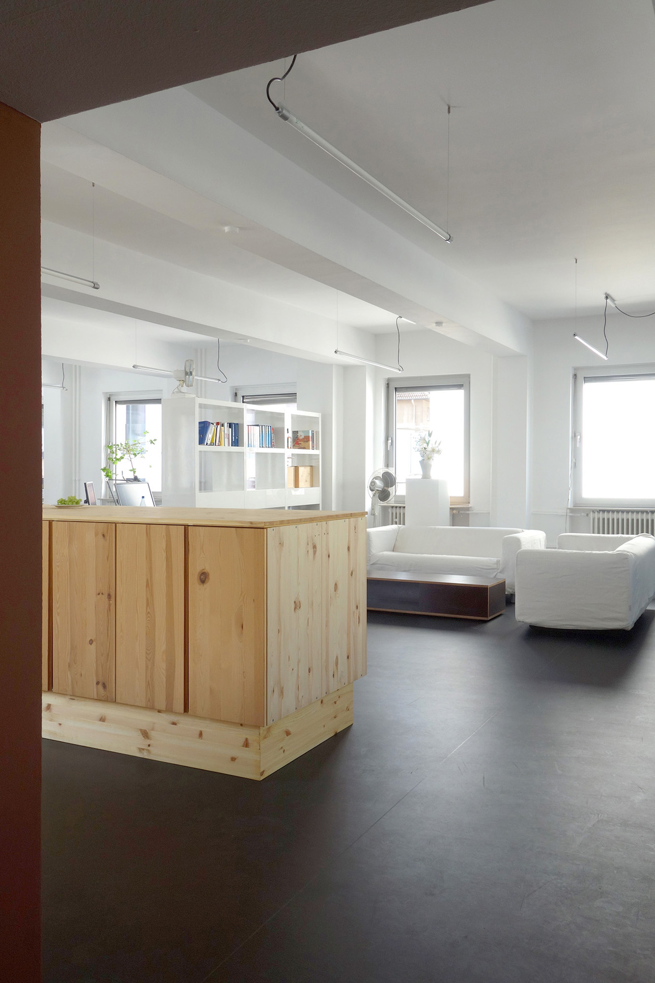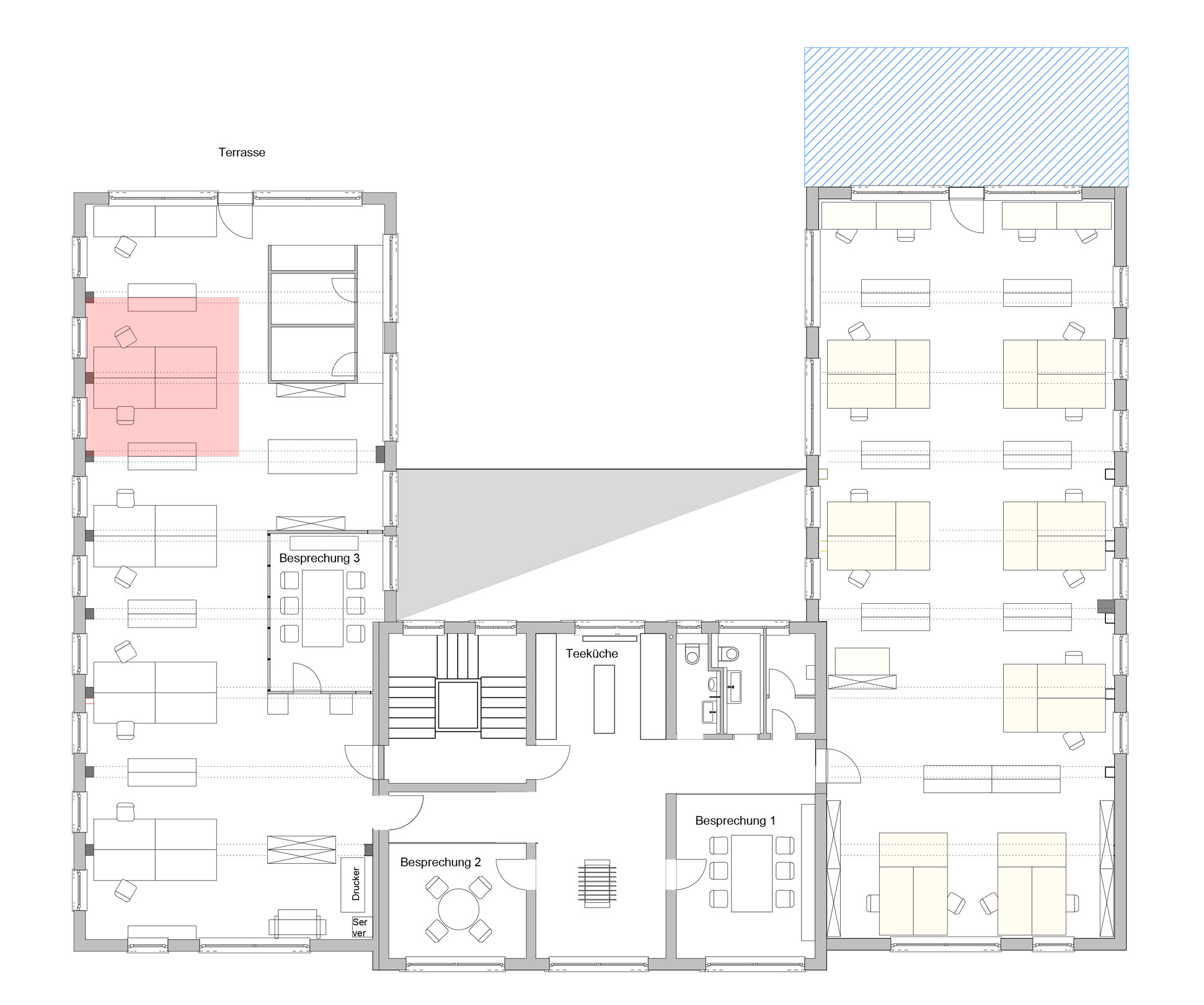 in Gemeinschafts-Büro mit gut ausgestatteter Küche, großzügigem Eingangsbereich und 3 Besprechungsräumen zur Mitnutzung.